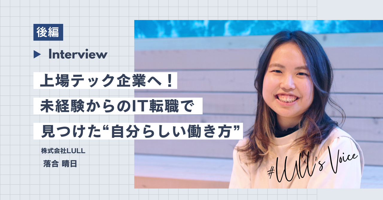 そこで出合ったのがLULLでした!LULLでは未経験からITスキルを学べる環境があり、WEBデザインだけではなくバックエンド側も学ぶことができます。現代のWEBデザイナーはバックエンドスキルを求められることが多く、また、私が挑戦してみたい分野でもあったので学習環境といった部分でLULLへの入社を決めました。